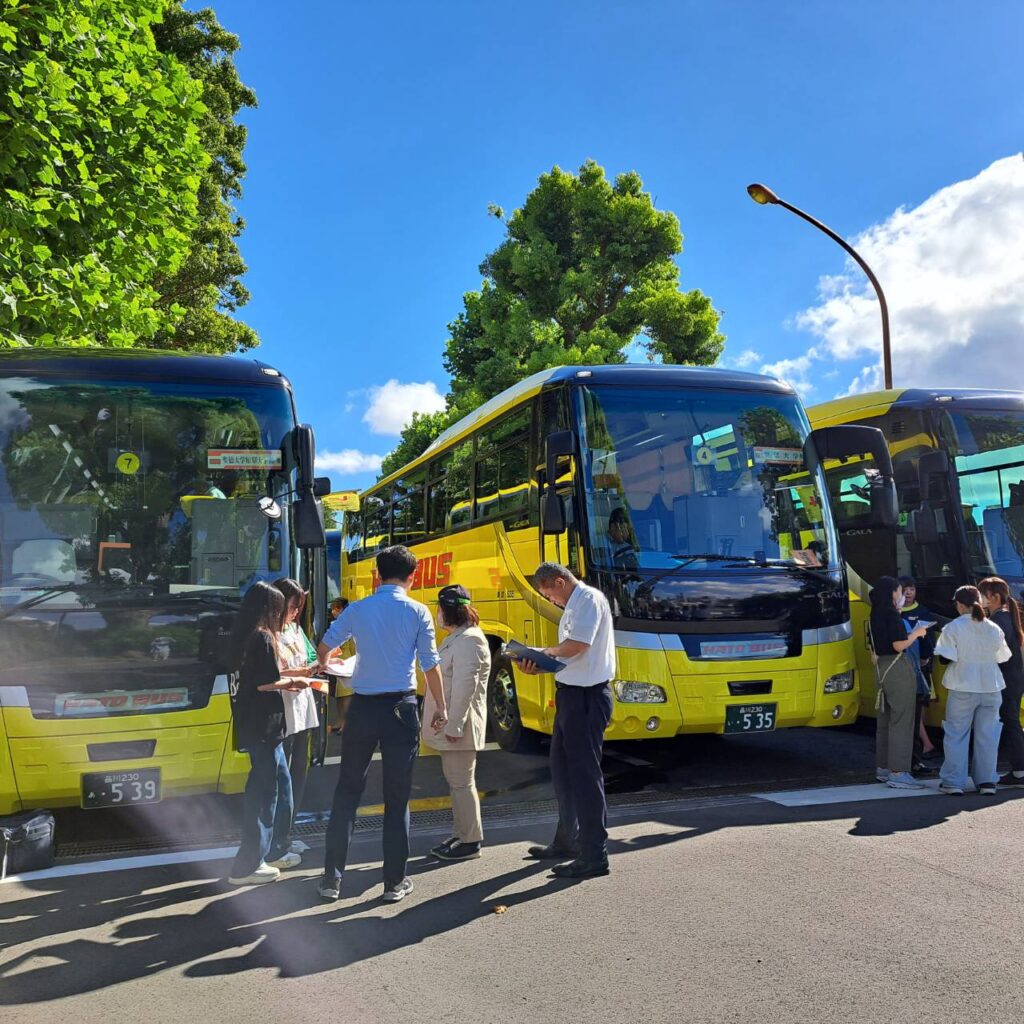 総合文化学科の学生は、上野駅バスターミナルに8:10集合、1人の遅刻もなく無事出発しました。