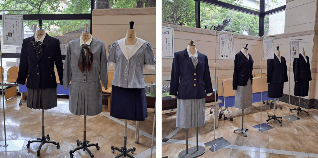 これまでの学科の歴史を年表で辿ったり、歴代の制服が展示されるなどなど。