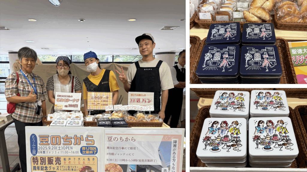 本学科製菓の堀田先生が監修された、豆のちからさんのおからクッキーは、60周年記念の缶に詰められ販売されました。