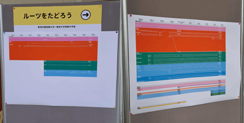 これまでの学科の歴史を年表で辿ったり、歴代の制服が展示されるなどなど。
