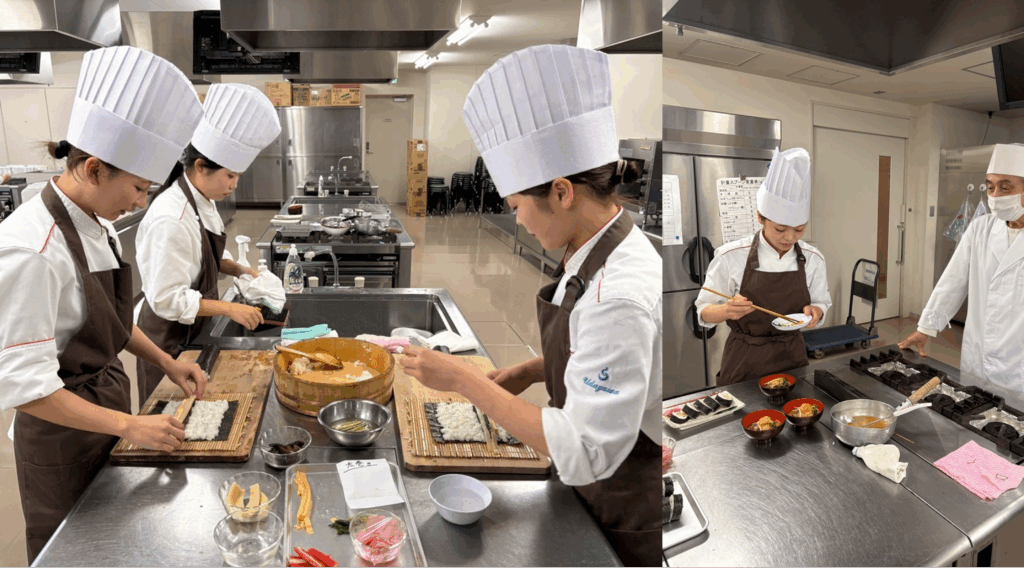 1回目の特別所業では、太巻き寿司と伏見豆腐のお椀の実習をしました。