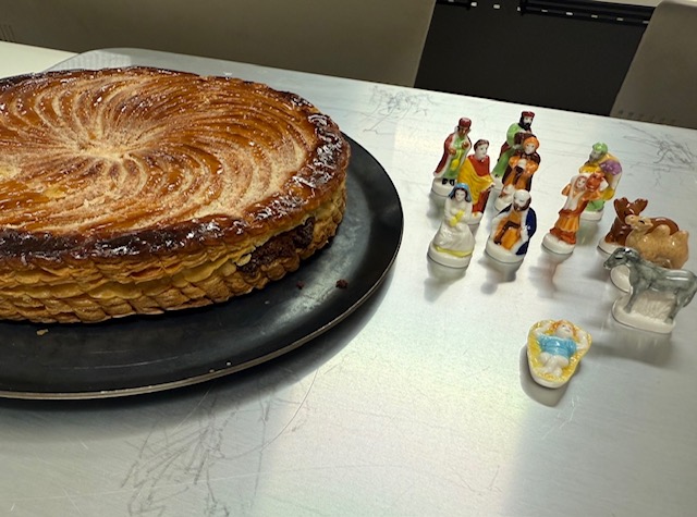 その12日後、1月6日は、イエスが初めて一般の人(三博士とも三王ともいわれている) にお目見えした日、エピファニー(公現節(公けに現れた日))です。日本でもだんだんと広まってきましたが、フランスのお菓子屋さんやパン屋さんには、ノエルが終わると「Galette des Rois (ガレット・デ・ロワ)」がたくさん並び、一月中は売られています。Roi (ロワ) とは王様のことで、3人だったので複数形(des Rois) になっています。