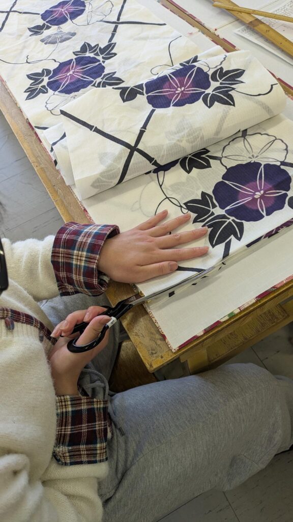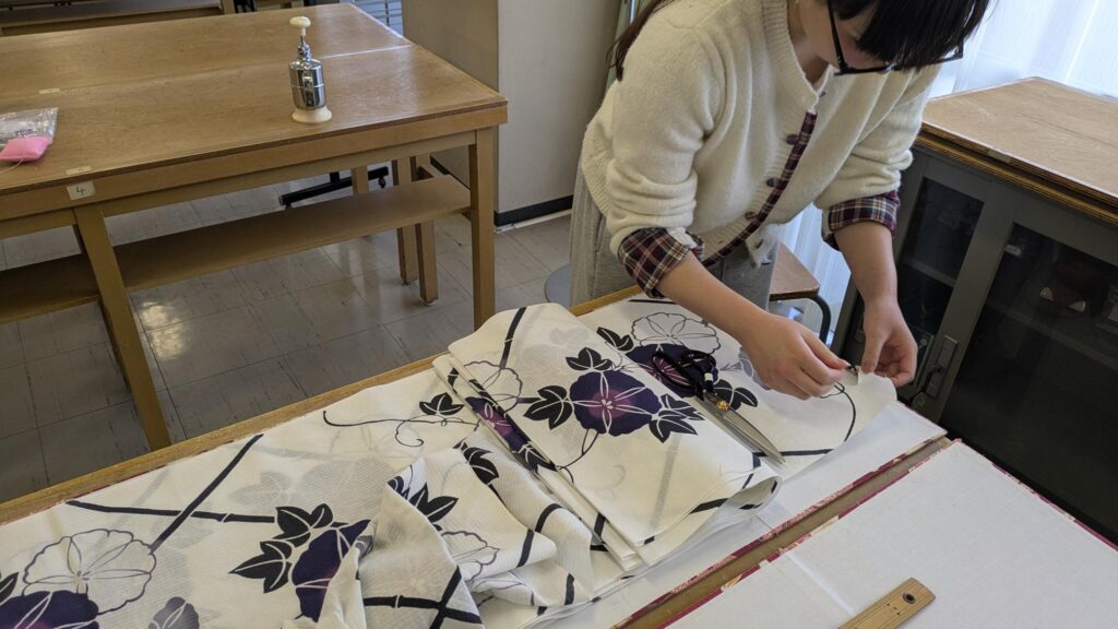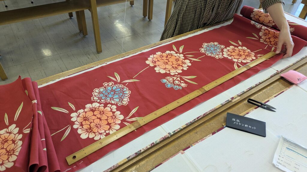 各自購入した反物(浴衣の生地)を持参し、いよいよ本格的に浴衣制作に入ります。