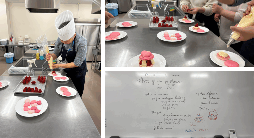 製菓の授業では、本格的な洋菓子の技術はもちろん身に付きますが、ルセット(レシピ)はフランス語ですので、フランス語も身に付くかも?‼