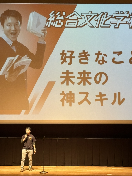 講堂での学科プレゼンバトルでは、学科長から総文の魅力は「人数が少なく、教員と学生との距離が近いところ!」との高校生の皆様への、熱いメッセージがあり、