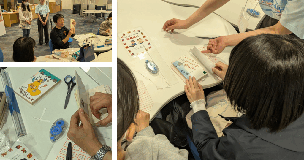 本の装備を実際に体験しました。本好きの方や、図書館司書を目指す方には、この体験はとっても嬉しいですね!