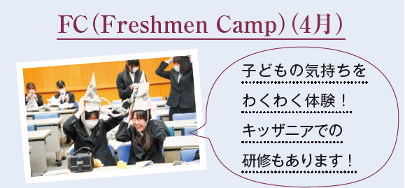 4月に行われる、教育研修「Freshmen Camp」では、キッザニア東京で、子どもの視点での遊びを体験します。