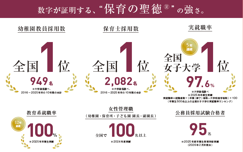 聖徳大学の保育士・幼稚園教員の採用者数は全国トップクラス。企業就職でも高い実績を誇っています。これらの成果の一端を支えるのが、就職活動をきめ細かくサポートするキャリア支援です。