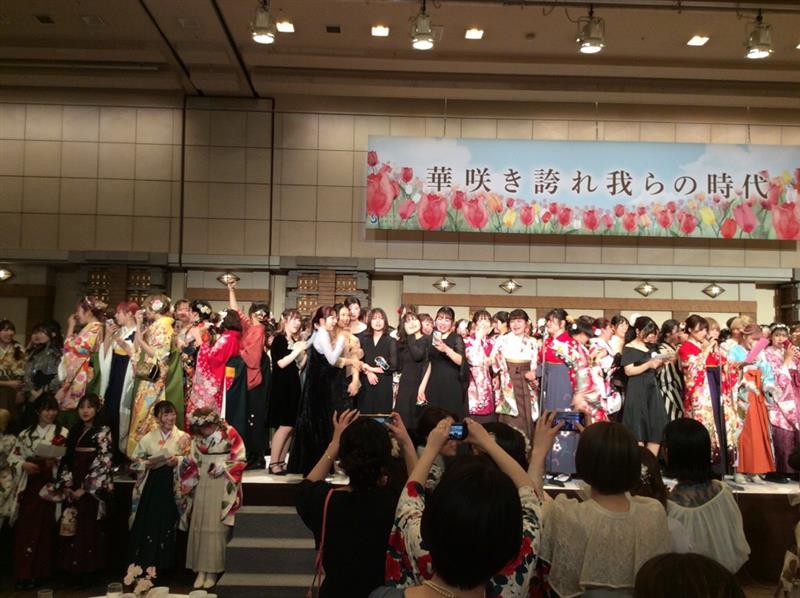 冒頭の写真は聖徳大学の謝恩会で、かなりの人数が舞台にのってぎゅうぎゅう詰めになっていますが、このようなお互いに親しい間柄でかつ特別な状況の時は例外かもしれません。