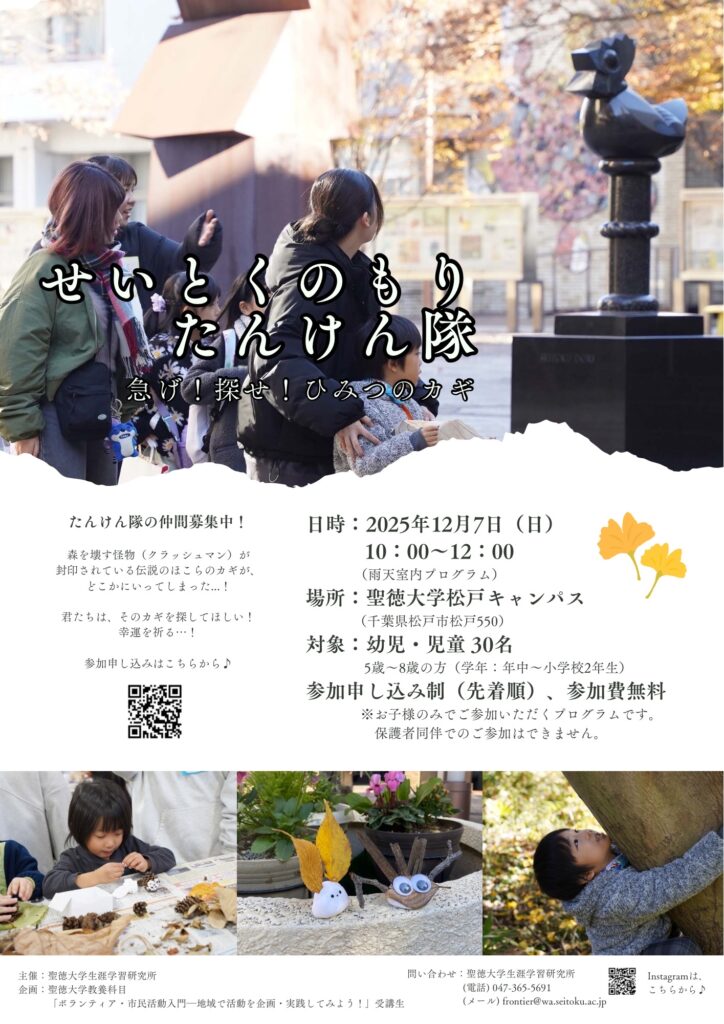 今日は、昨年12月7日に実施した「せいとくの森たんけん隊―急げ!探せ!ひみつの鍵―」の当日の様子ついてご紹介します!