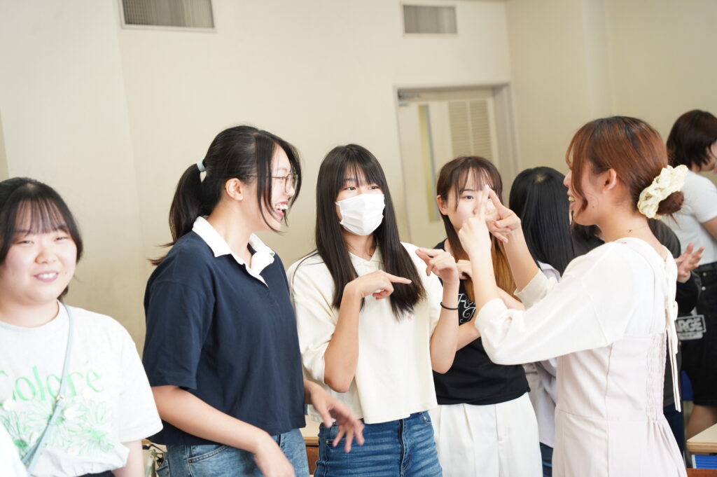 「児童文化実践演習」は、児童文化コース4年間のまとめの授業ですが、今年に限り、1年生(児童文化コースを検討している1年生)と4年生が協力してプロジェクトを立ち上げ実践しました。初回はアイスブレイク。学年を超えてとてもいい雰囲気でした。