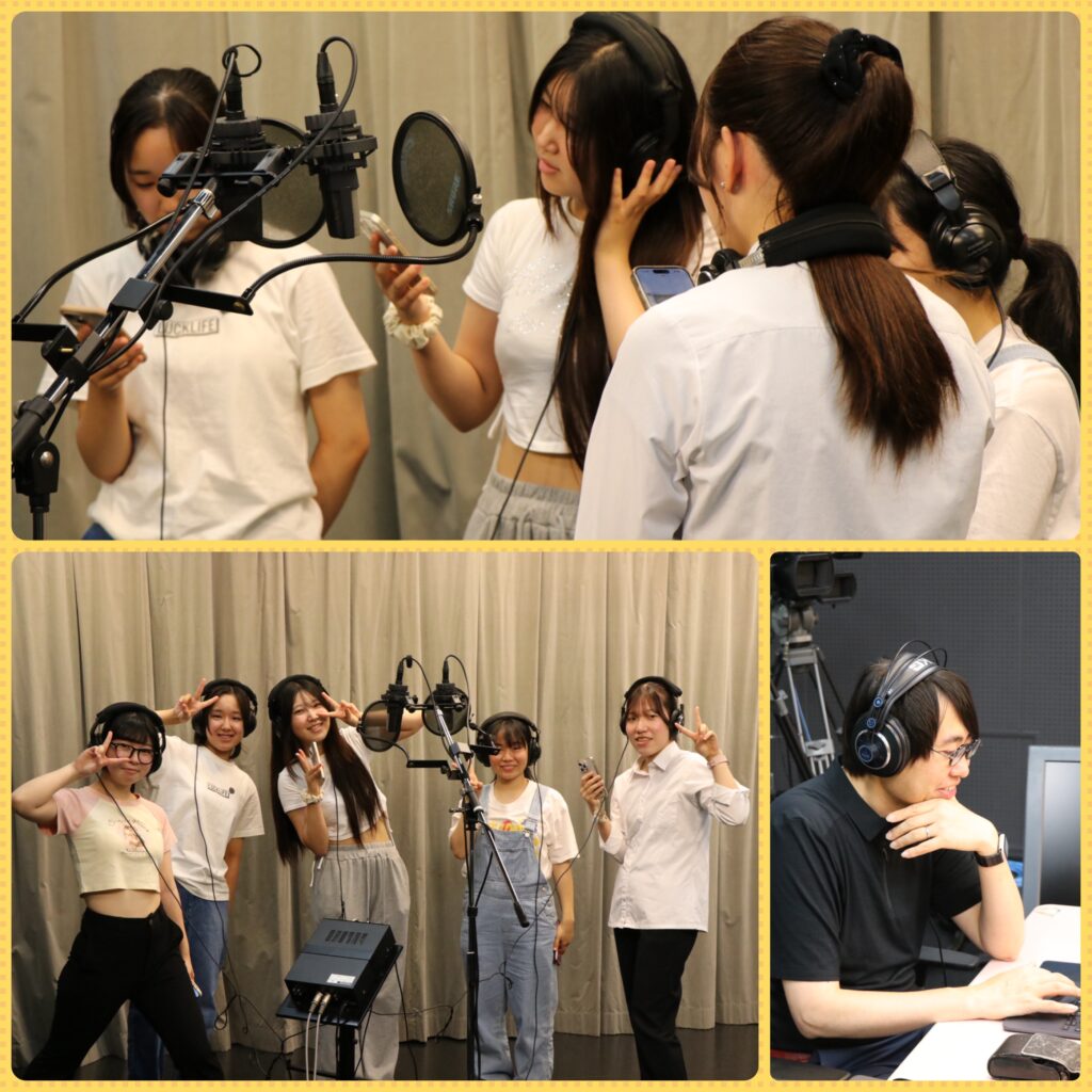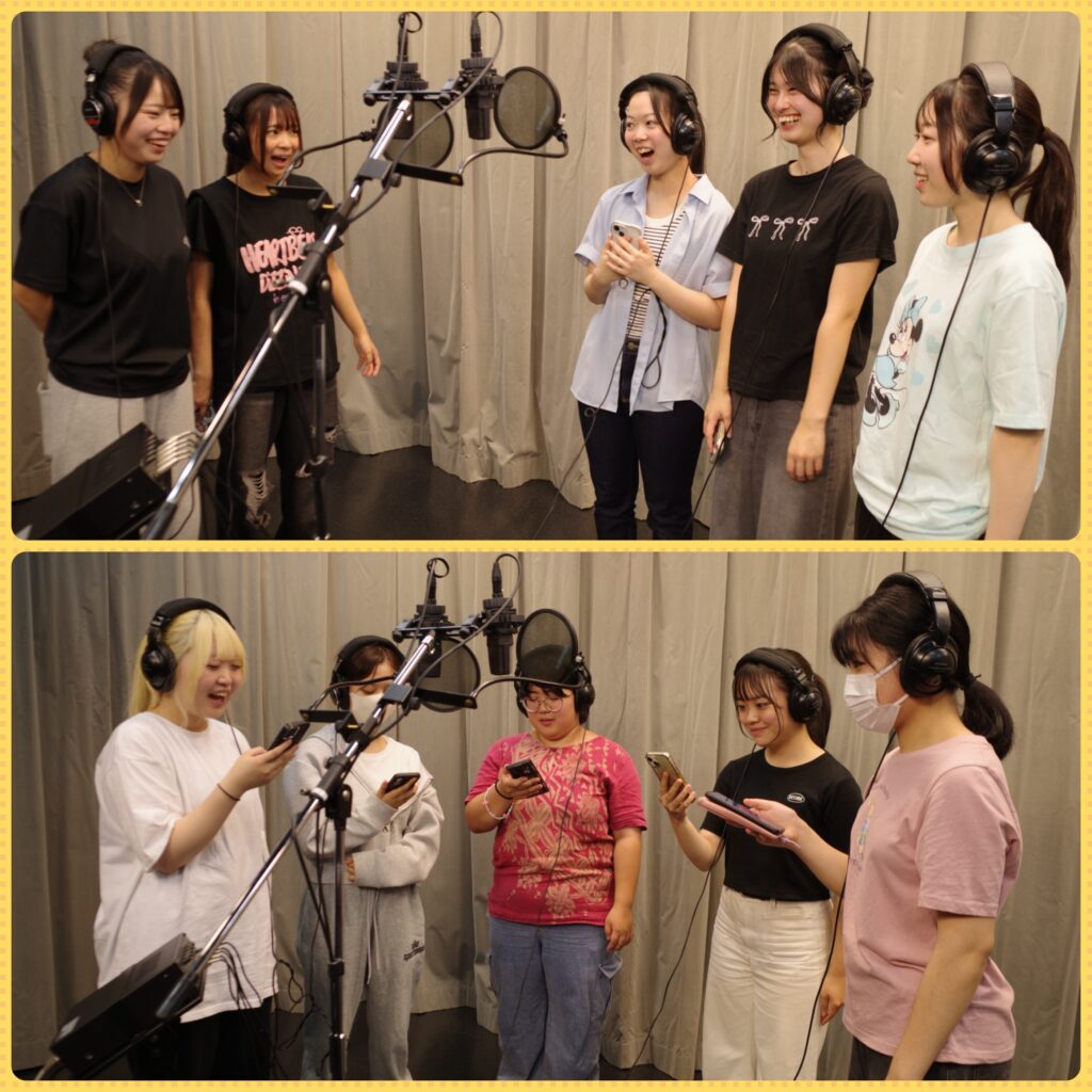 その音源のために、学内のレコーディングスタジオで収録をしました。ホイクカ女子の皆さんも、緊張しながらも、とても楽しそう!