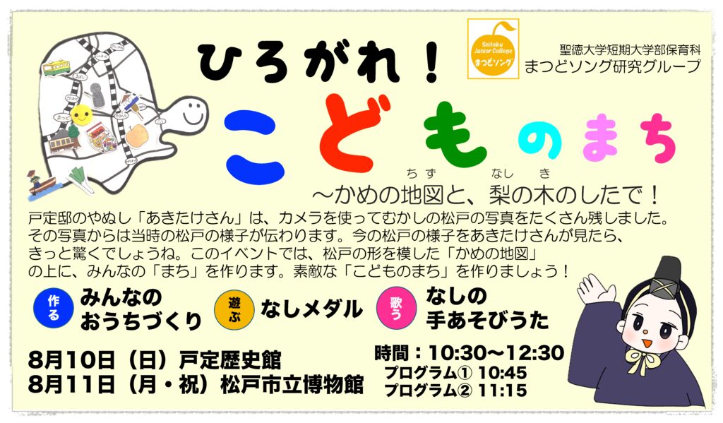 現在、松戸市立博物館と松戸市戸定歴史館の連携特別展「まつど×とくがわ 昭武・武定の生きた明治・大正・昭和」が開催されております。その中で、8月10日に戸定歴史館、8月11日に松戸市立博物館にて、まつどソング研究グループがイベントを開催致します!