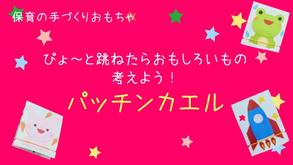 パッチンカエルの仕組みを使って、ぴょ~ンと跳ねたらおもしろいもの考えて、つくって遊びましょう!みなさんだったら、何が跳ねたら面白いですか?
