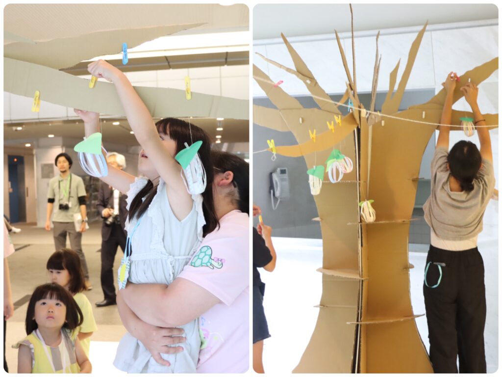 ここでは家づくりに加え、梨のオブジェ作りをして、たくさんのオリジナルな新種の梨が完成しました!そして大きな梨の木に飾っていきます。