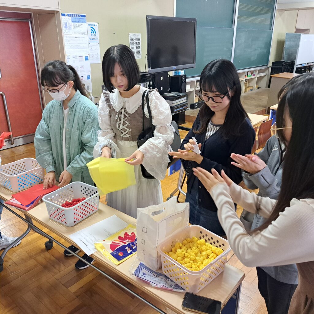 授業の開始前や終了後、ちょっとした時間を見つけては、くるくる丸めてペーパーボールを作ります。
