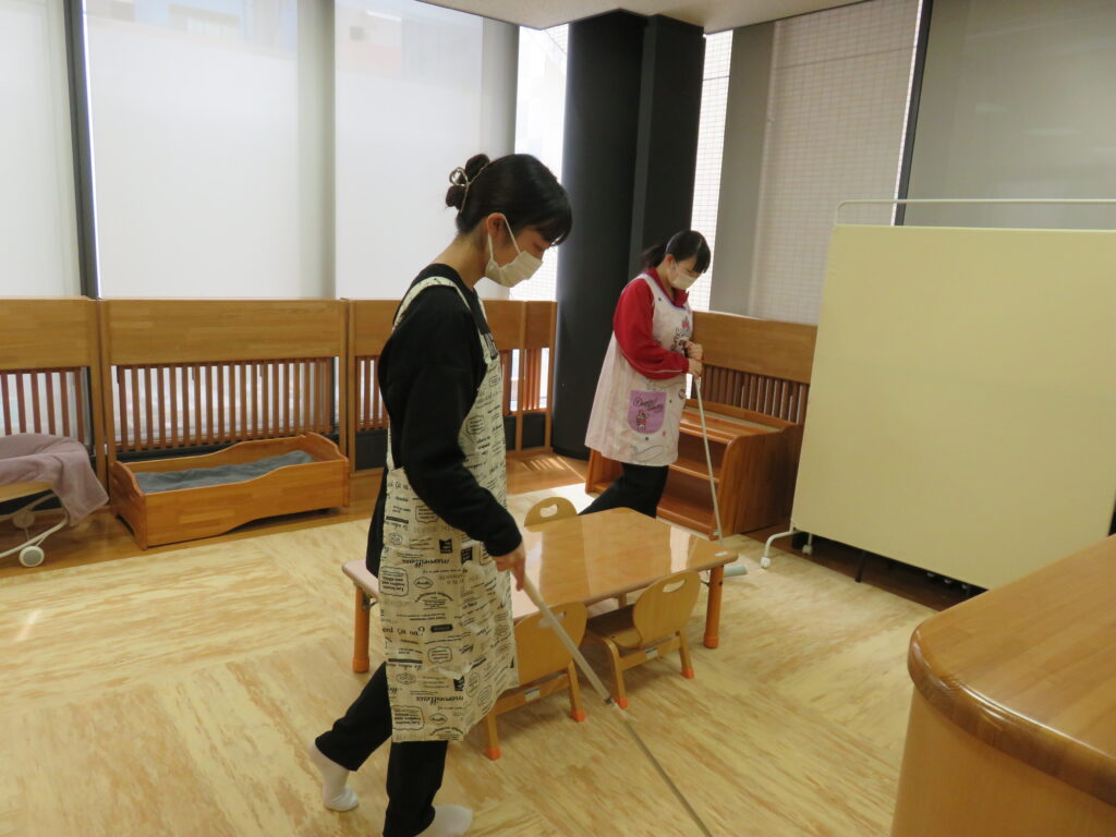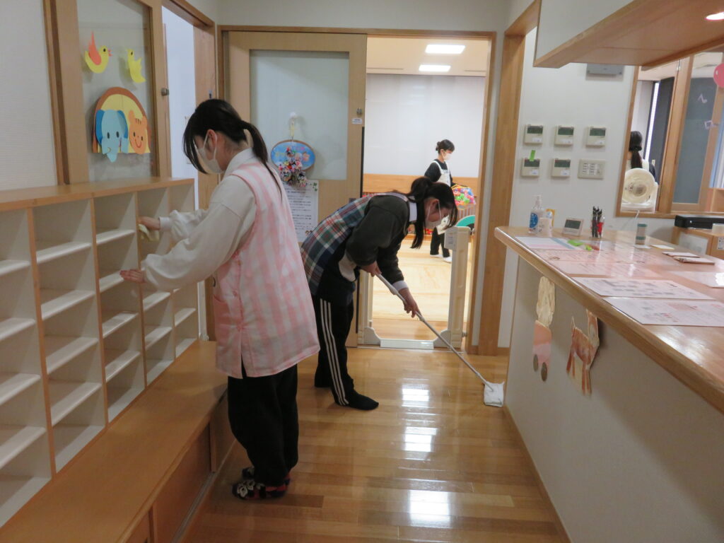 開館前のお掃除など受け入れの準備から始めます。
