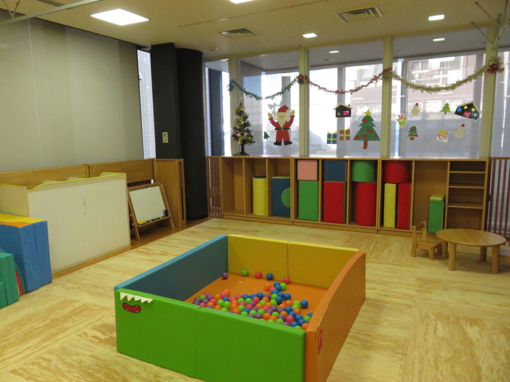 お部屋には、子どもがたちが楽しく遊べる玩具やすべり台、ボールプールなどがあります。