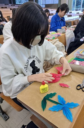 ボンドで接着する前にハサミを入れると、ほら、お花のようになりました。