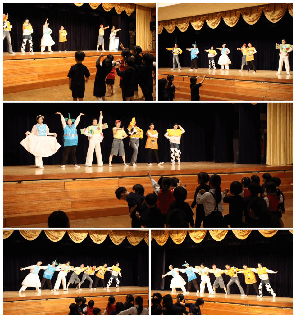 動くおもちゃたちと一緒に遊んだあとで、「君はともだち」を皆で踊りました。このダンスはグループのメンバーで創作したオリジナルです。