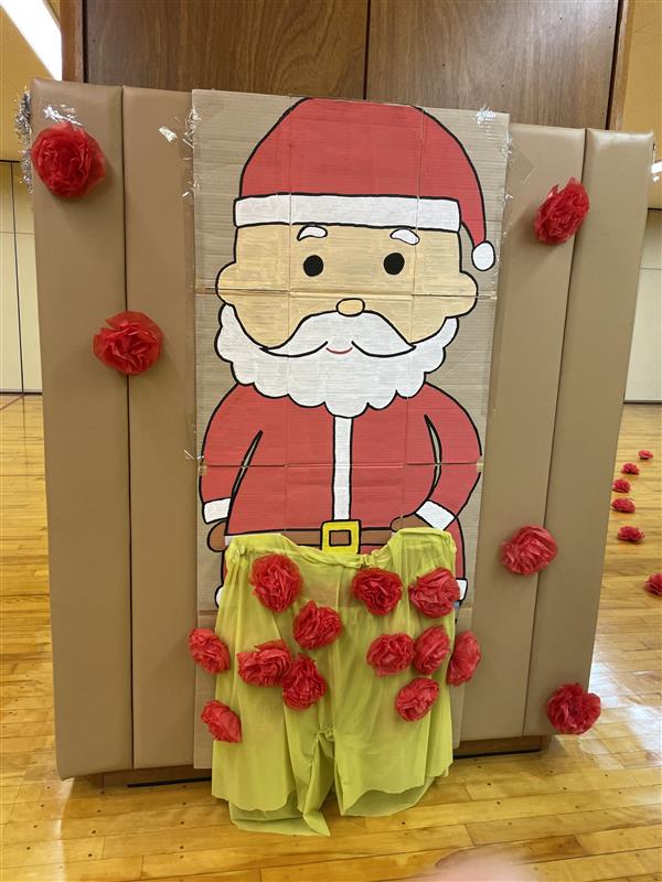 ある日、サンタさんの大きなズボンを干していたら風にとばされちゃった!このままだとみんなの所にプレゼントを届けることができなくなっちゃう。みんなの力を借りてサンタさんにズボンをはかせよう!そこにたどり着くまでには、二人で協力してプレゼントを集めたりそりを引っ張たりしながらサンタさんの大きなズボンを見つけ、それを二人で履いてサンタさんのところまで行きパンツを渡します。うまくいくかな?隣のチームに負けないようにがんばろう!