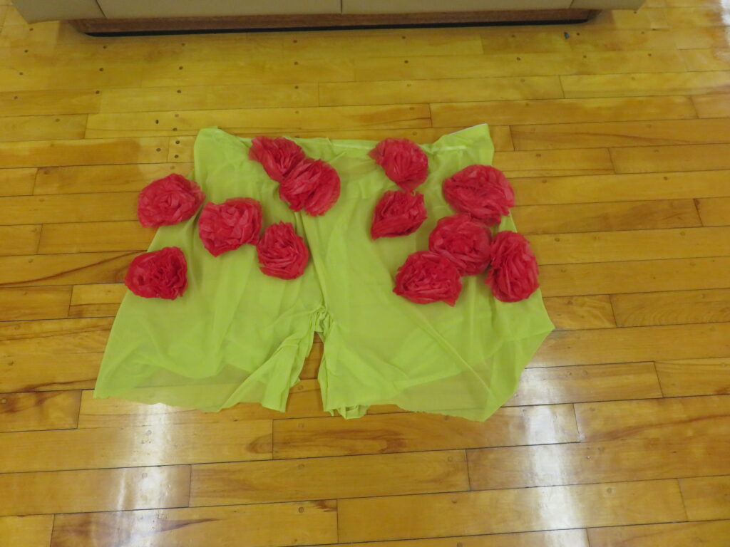 このグループでは、自分が子どもだった頃に大好きだった迷路を作りたい!!ということで、ジャングルがテーマの迷路作りをしました。ところが、、、段ボールをうまく立てるのに大苦労。なんとか方法を見つけ、この高さならトンネルにしたいねと、上から布をかぶせることに。しっかり準備体操をしてから、いざ迷路へ!