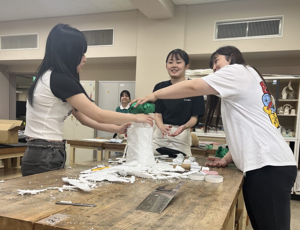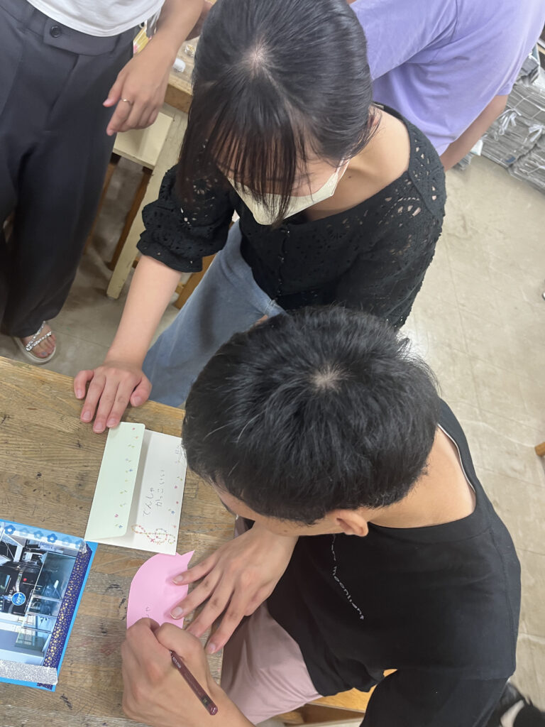 昨年度同じアート活動をおこなった先輩も来て、3年生にアドバイスをしてくれました。