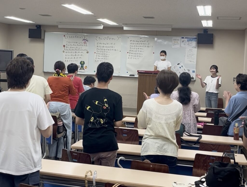 まずは、ウェルカムソングということで、学生のピアノでみんなで歌って交流を深めました。