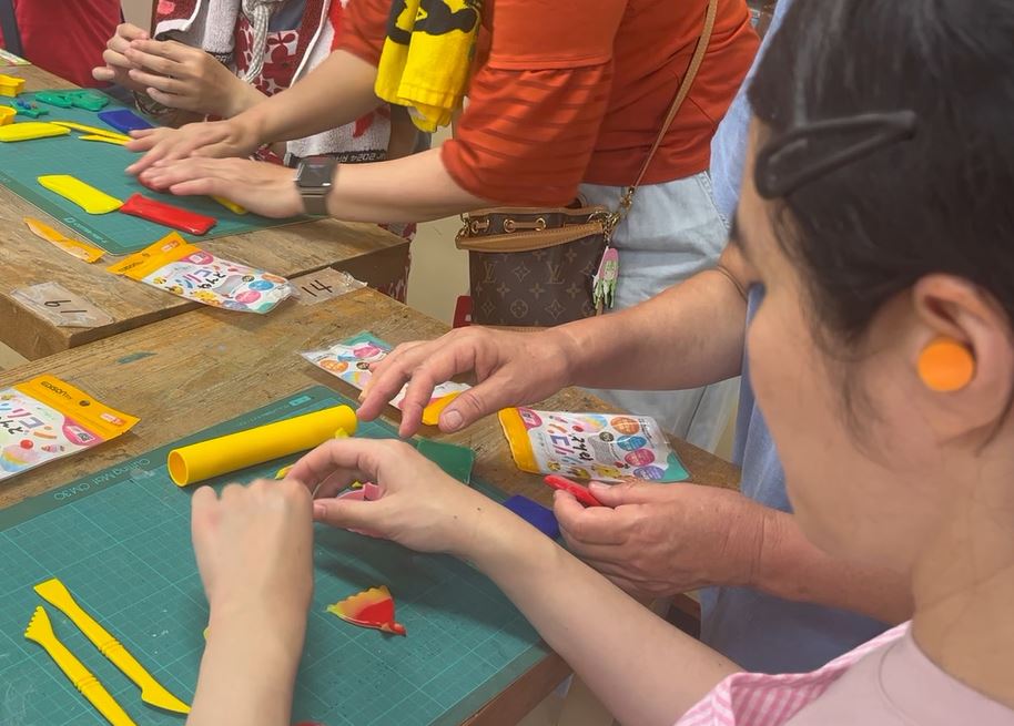 色を混ぜたり、型抜きをしたりして、それぞれに好きな形を作りました。