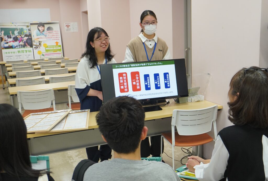 教育学科の2つのコース(小学校教員養成コース、特別支援教育コース)についてそれぞれのコーナーで説明します。