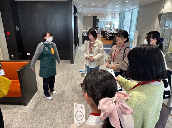この日、施設の案内やサービスの説明をしていただいた職員の方は、本学図書館情報コースの卒業生です。