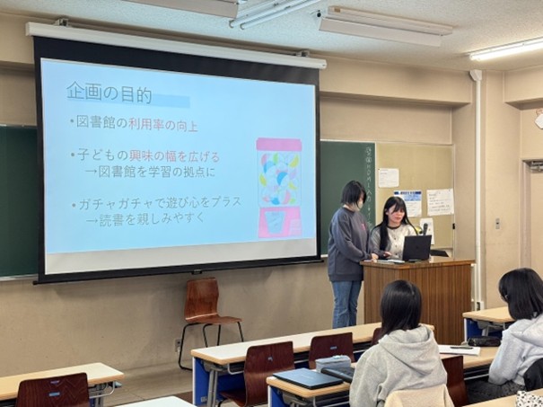学生による企画発表では、「ガチャ」を使った本との出会いを演出する企画、本の中に登場する「料理」に着目して、料理にまつわる資料やレシピを紹介する企画などが提案されました。