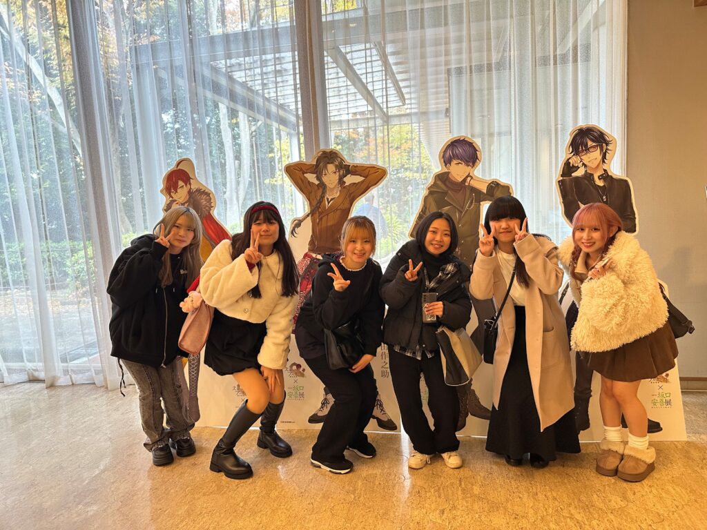 参加した学生たちからは「坂口安吾の頭の中をのぞき込むようでした」「字がとてもきれいで読みやすく、意外でした」「仲間をかばう姿に情の深さを思いました」「作品を読みたくなりました」「散らかった書斎が再現されていて、そこで記念写真を撮りました」と口々に満足そうな表情で語っていました。