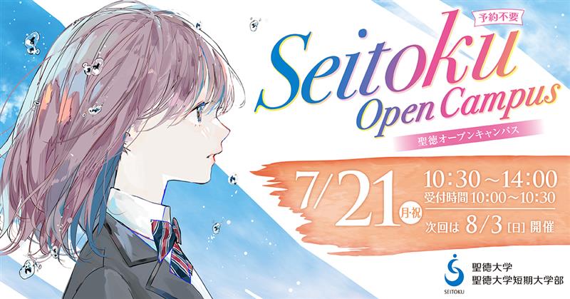 聖徳大学では7月21日(月)の10:30〜14:00にオープンキャンパスを開催いたしますので、是非、夏休みに行きたいオープンキャンパス候補の1つに入れてくださいね。
