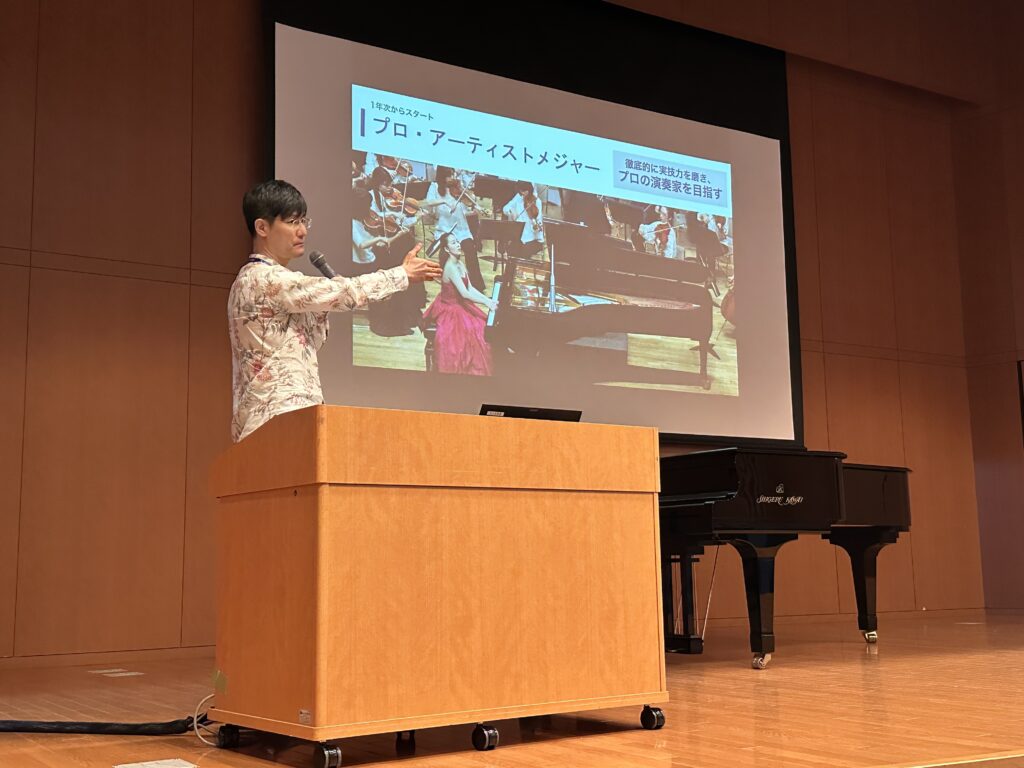 堂々と笑顔で、音楽学部で学べる環境の良さをアピールしました!