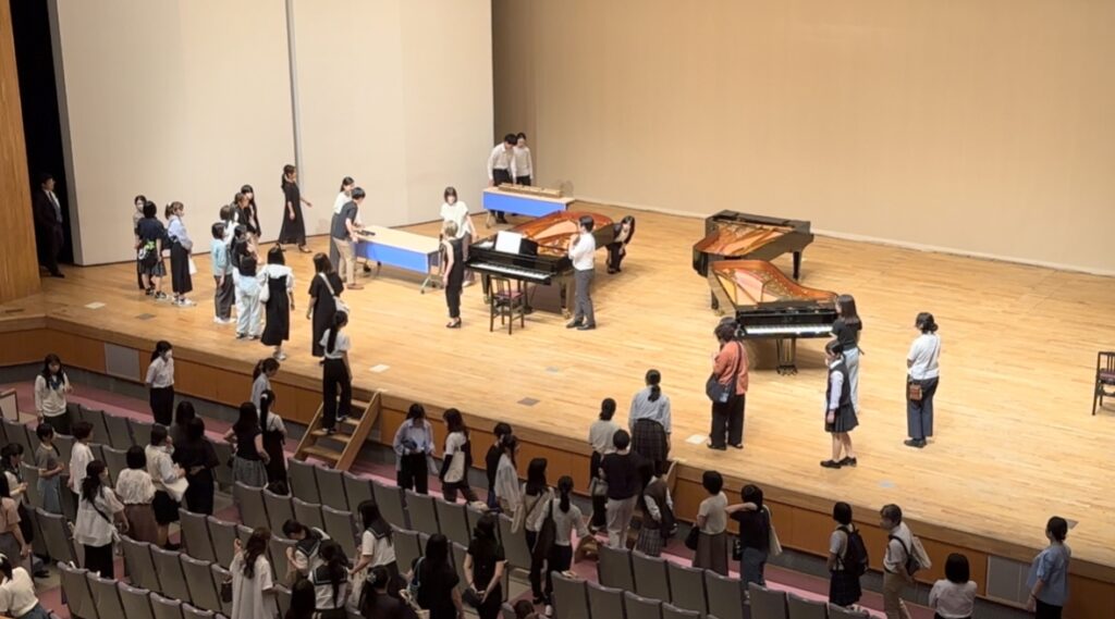 まずはベーゼンドルファー、スタインウェイ、ヤマハの3台のグランドピアノの音色を聴き比べます。