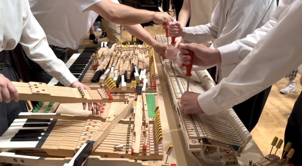 ここからは調律師のお仕事です。大豆生田さんを始め、6名の調律師が解体作業に関わりました。