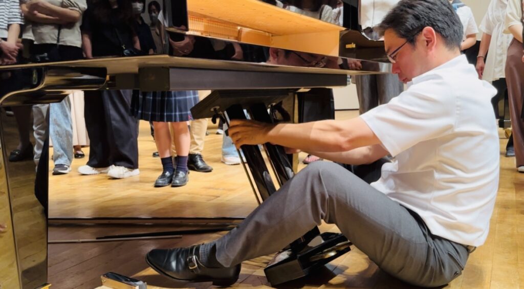 一つ一つの部品に込められた職人の技が、集合体となって、ピアノが生まれ、その後、メンテナンスは調律師に任されます。ピアニストにとって、ピアノとの出会いと同じくらい、調律師との出会いも大切ですね。聖徳大学のピアノは、いつ弾いてもキラキラした音なのには、訳がありますね!