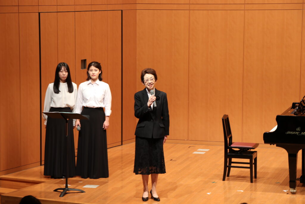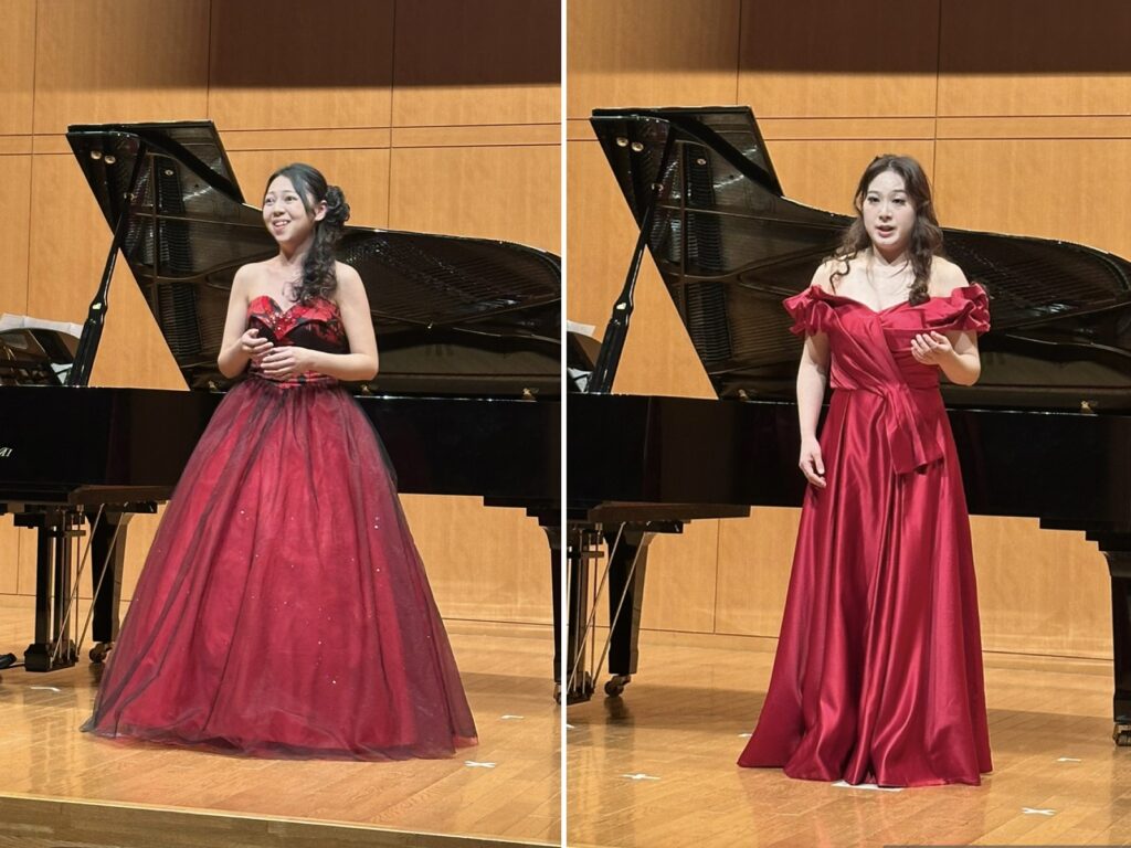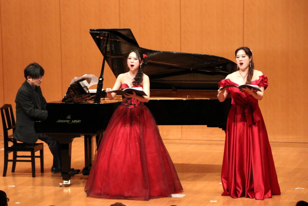 大学院を修了し、SOA音楽研究センターで研鑽を積む2名が、それぞれ異なる作曲家の《アヴェ・マリア》を歌い、さらに二重唱でムードを盛り上げます(ピアノ:鳥井俊之先生)。