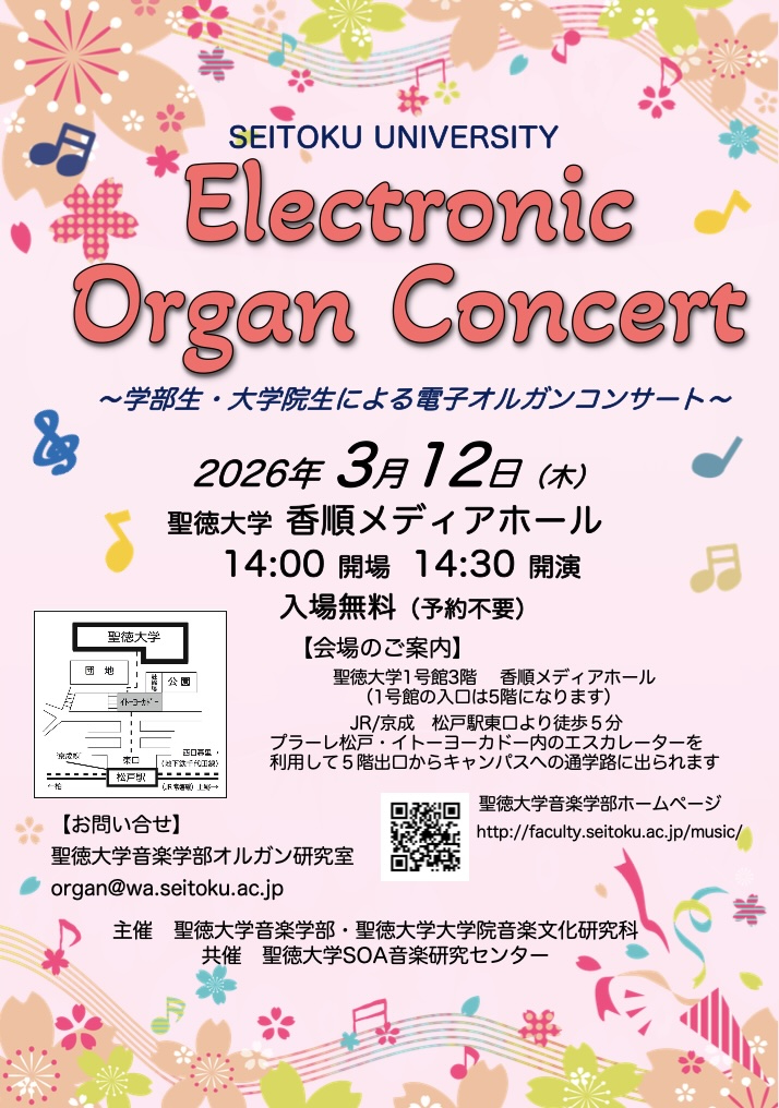 今年もEOC(電子オルガンコンサート)が3月12日(木)14時30分から、香順メディアホールで開催されます。