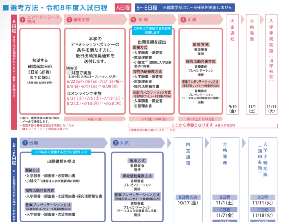総合型選抜A日程とB日程