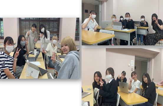 「充実した大学生活」をテーマに、学生たちは睡眠・食事・実習の3グループに分かれて健康との関わりを調べました。パソコンで情報を集め、意見を交換する姿は、楽しさと真剣さが入り混じり、とても印象的でした。笑顔で話し合いながら学び合う様子からは、学年を超えたつながりも感じられます。