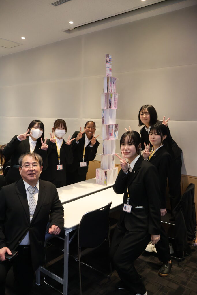 研修では、学科の学びや4年間のカリキュラム案作成だけでなく、ペーパータワー作りなどのオリエンテーションも実施され盛り上がりました。