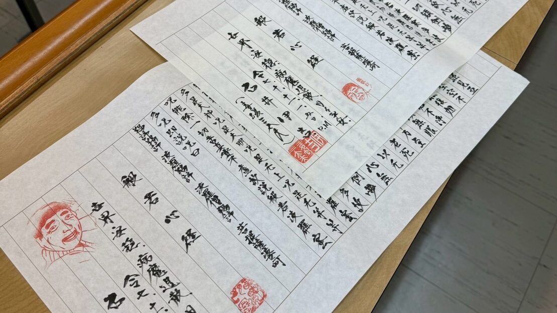 そして、絵本の他にも、毒蝮先生から心の安寧や無病息災などを願った写経が学生一人ひとりに贈られました。