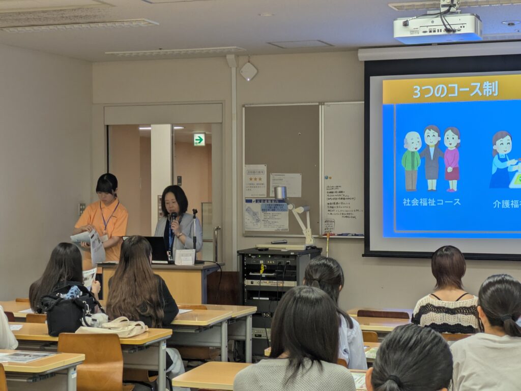 プレゼンバトルという講堂での学科紹介から始まり、教室で学科説明、テーマ企画、演習施設見学と続きました。