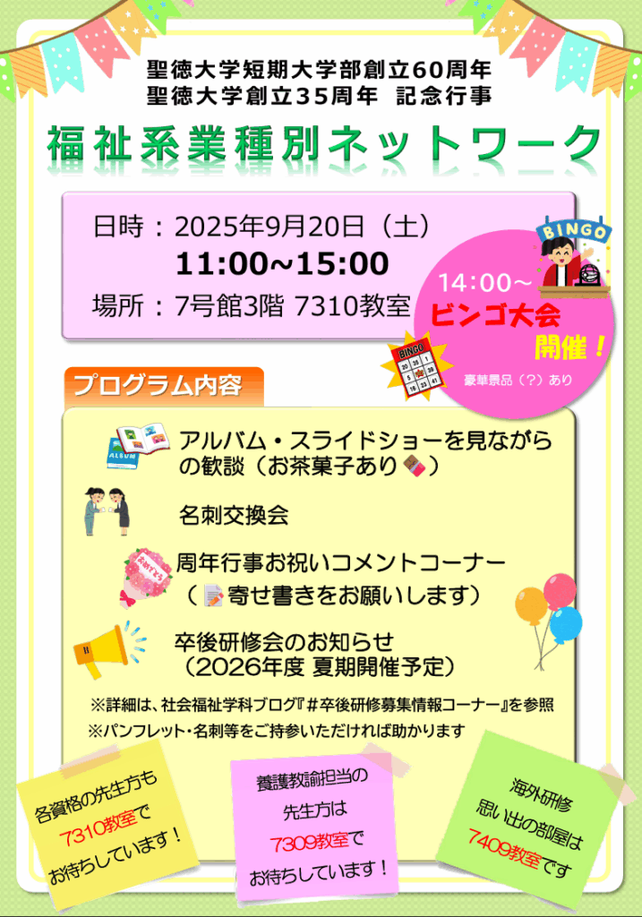 ぜひこの機会に、聖徳大学で再びつながり、語らい、笑顔の「和」を交わしませんか。