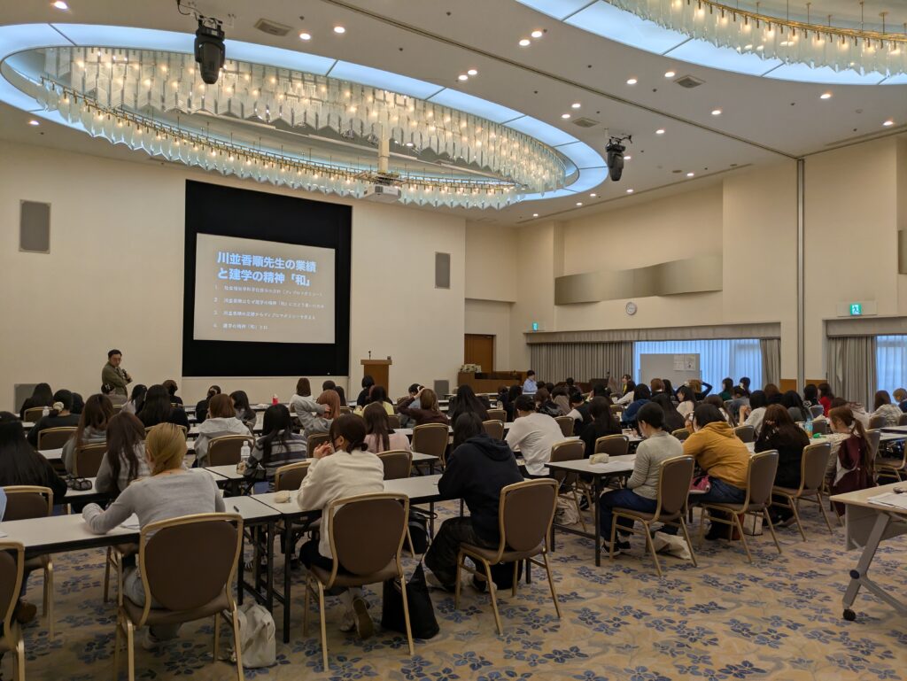 9日(木)は8時30分に大学を出発し、11時過ぎにホテル着。全大会の後に昼食をとり、午後のプログラム。冒頭に川並学長先生からのお話をいただき、活動開始。アイスブレーキング、チームビルディングのグループワークを行いました。